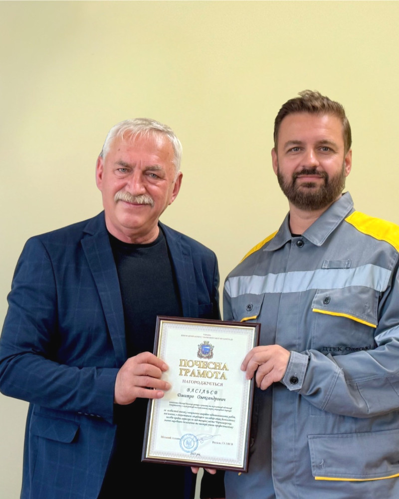 In particular, Vitaliy Shestun, the chief specialist on commercial losses, received a certificate from the Cabinet for ensuring the stable operation of the region's energy infrastructure during the state of war.
