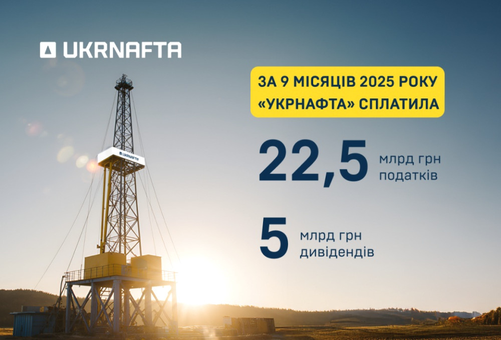 В течение первых девяти месяцев 2025 года АО "Укрнафта" уплатила более 22,5 млрд грн налогов и выплатила 5 млрд грн дивидендов. Об этом сообщила пресс-служба компании.