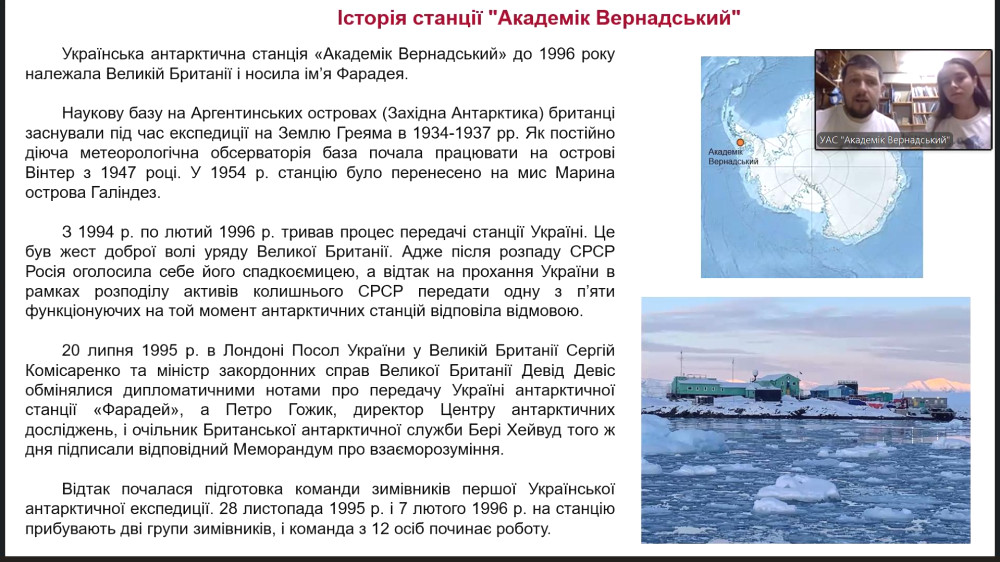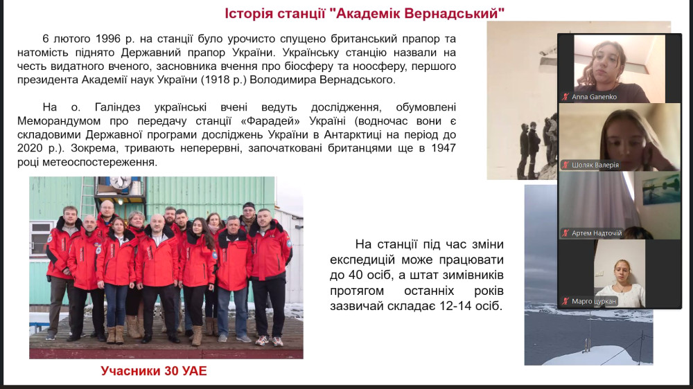 В лицее №56 состоялось необычное событие — школьники присоединились к Zoom-встрече с участниками 30-й Украинской антарктической экспедиции. На связи с Одессой вышли биолог Елизавета Сафонова, уроженка нашего города, и её коллега, биолог Тарас Перетятко.