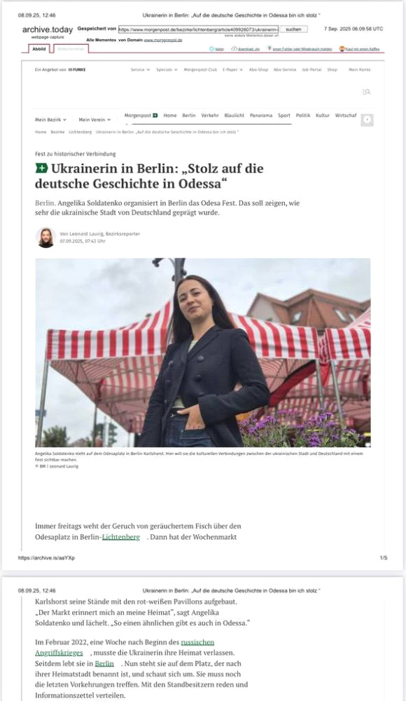 10 сентября на площади Odesaplatz в Лихтенберге состоялся OdesaFest — культурное мероприятие, объединившее украинцев и жителей Берлина вокруг темы Одессы.