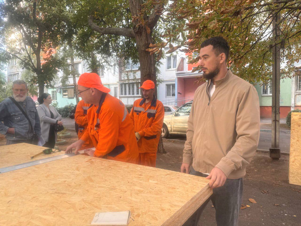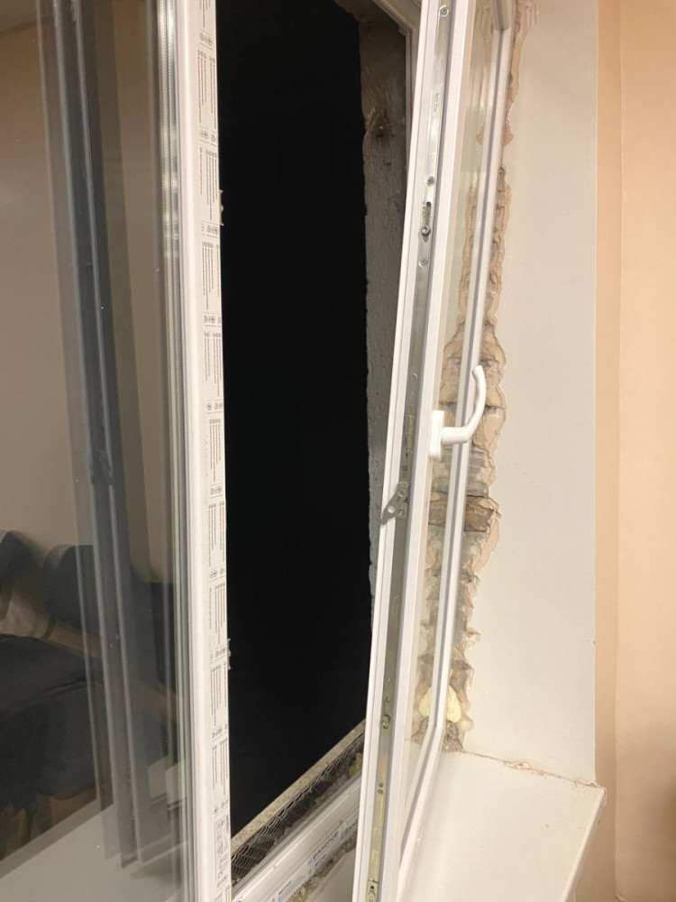 На 9:00 известно о 130 поврежденных окнах, из которых 30 в учебном заведении. Работы по закрытию окон пленкой и ОСБ-плитами продолжаются.